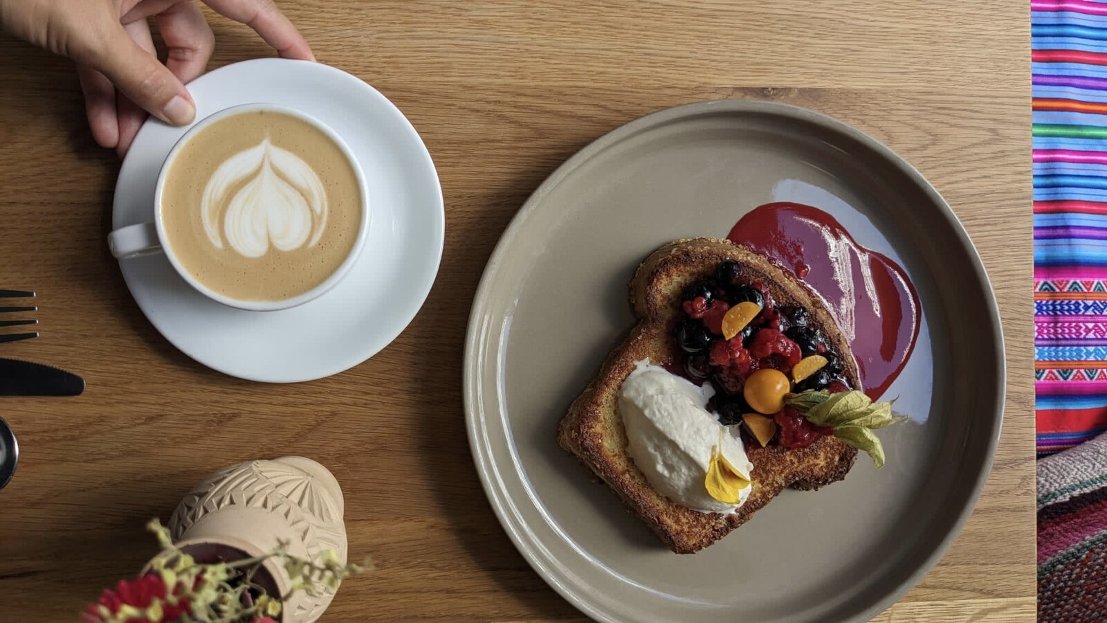 Unser Überraschungs-Brunch-Menü zum Teilen ist eine Hommage an unsere lateinamerikanischen Wurzeln mit einer modernen, aufregenden Note. 3-Gänge-Menü zum Teilen, begleitet von einem Kaffee nach Wahl und einem Mimosa Cocktail mit frisch gepresstem Orangensaft (oder frisch gepresstem Orangensaft als alkoholfreie Alternative). Vegetarische oder vegane Optionen sind natürlich auch möglich.