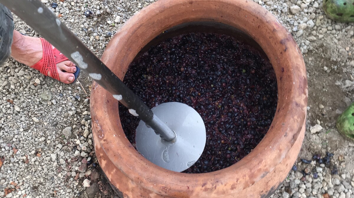 Funde zeigen, dass Menschen in Georgien bereits vor etwa 8000 Jahren Wein herstellten. Der gewonnene Traubensaft wurde zusammen mit den Traubenschalen, -kernen und -stielen in grosse Tongefässe gegeben – also Orangewein, sofern weisse Trauben verwendet wurden. Noch heute gibt es in Georgien eine Vielzahl an Orangenweinen. Diese Gefässe, die heute als Qvevris bekannt sind, wurden tief in den Boden eingegraben, um die Temperatur während der Fermentation konstant zu halten.