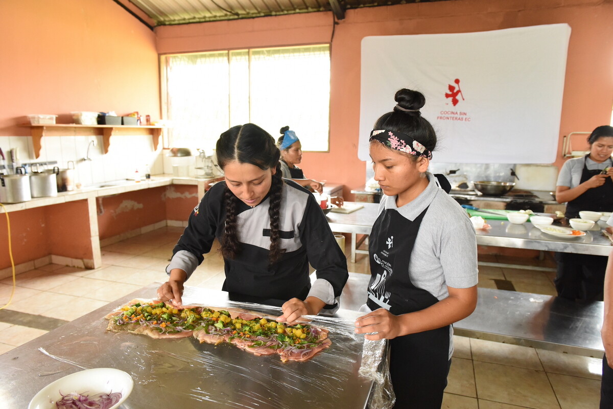 Wir arbeiten vor Ort mit dem was es gibt. Traditionelle Produkte und Zubereitungsarten ziehen wir in die Projekte mit ein. Oftmals sind ja die traditionellen Arten sich zu ernähren auch jene, welche unsere Umwelt schonen, also mit wenig Abfall und kurzen Wegen einher gehen. So werden zum Beispiel auf dem Regenwaldcampus El Fogon in Ecuador in kleinen Beeten bewusst alte, lokale Gemüse-Sorten angebaut und die Auszubildenden lernen traditionelle Gerichte auf Restaurantniveau zuzubereiten.