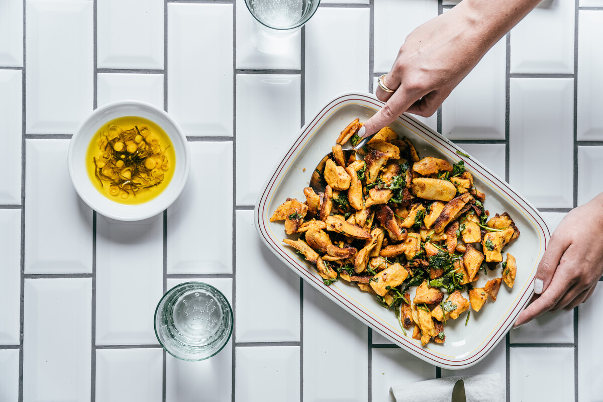 Sie hat das erste vegane Restaurant der Schweiz eröffnet und kocht schon mal ganze Menüs mit Lebensmitteln, die sie aus Containern rettet: Lauren Wildbolz führt ein Catering-Unternehmen und veranstaltet Begegnungen zwischen Kunst und Kulinarik. Für uns hat sie ein Sommergericht kreiert, mit dem wir dank Kafirlimettenblättern und Safran gedanklich ein bisschen verreisen können: Falsches Poulet mit Zitronenreis.
